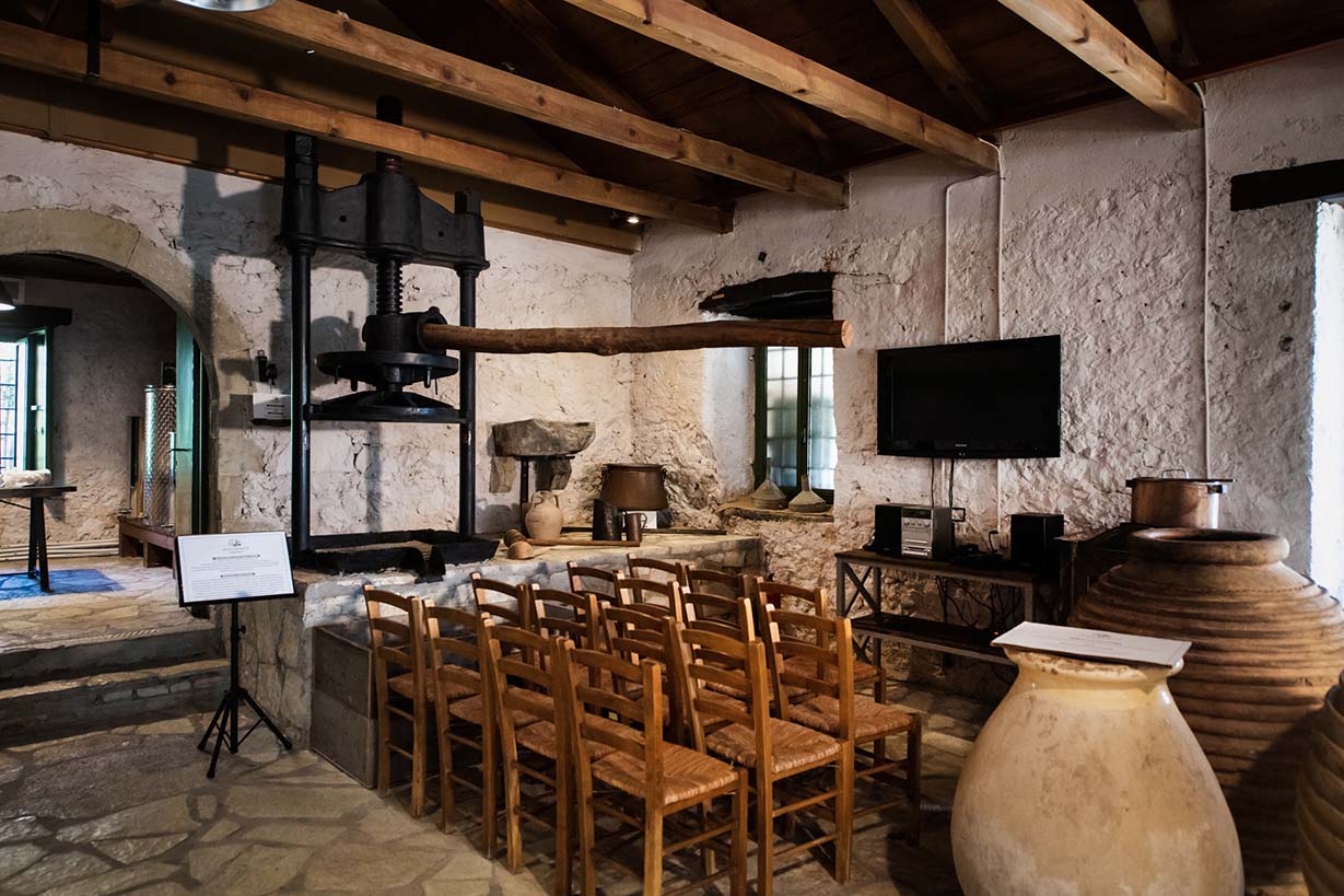The museum is part of a 19th century building complex, including the old olive oil factory which still belongs to the Tsarlambas family, one of the oldest family trees on the island.